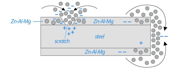 Alle tests tonen aan dat ZM 250-systemen een betere corrosiebescherming bieden dan andere metalen coatingsystemen (bijvoorbeeld minstens twee keer zo goed als normaal thermisch verzinkt staal). Dankzij het magnesiumgehalte van 3% biedt ZM250-staal zelfherstellend vermogen op snijranden. Beide zijden van het met zink-magnesium gelegeerde staal zijn beschermd met een polyurethaanlaag die bescherming biedt en een uniforme ondergrond vormt voor verdere coatings.
